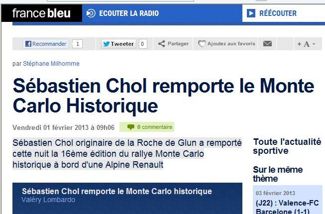 1 victoire au Monte Carlo Historique: 1 individuelle en 2013….. 1 par équipe en 2015 avec une